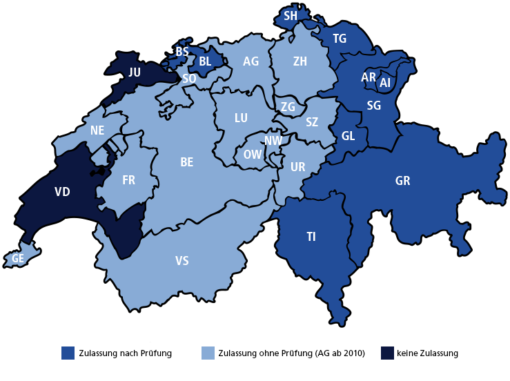 Daneben gibt es unterschiedliche kantonale Bestimmungen bezüglich der beruflichen Ausübung der alternativen Heilkunde.